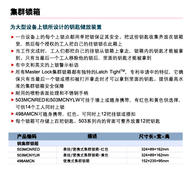Masterlock 玛斯特 503MCN系列 悬挂/便携式 集群锁箱